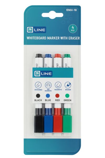 أقلام سبورة بيضاء ممغنطة مع ممسحة – 4 ألوان