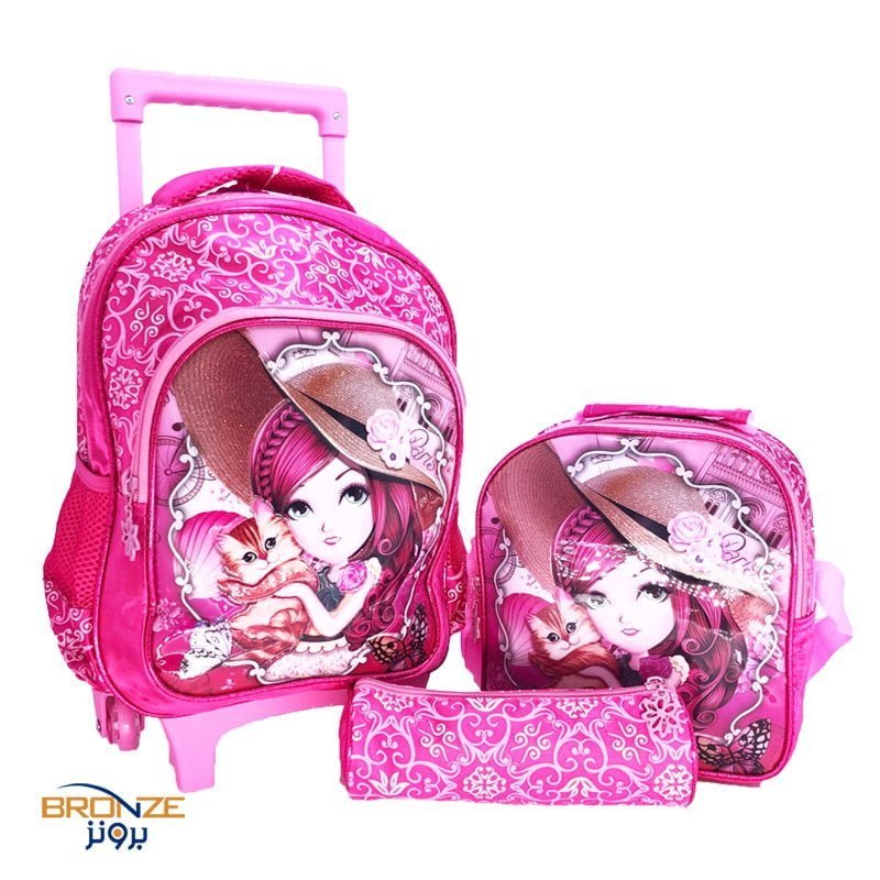 شنطة مدرسية بنات 14″ مع شنطة أكل ومقلمة – رسوم كرتونية